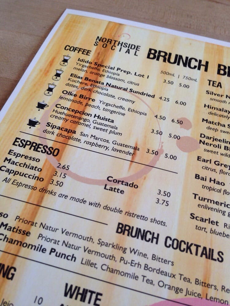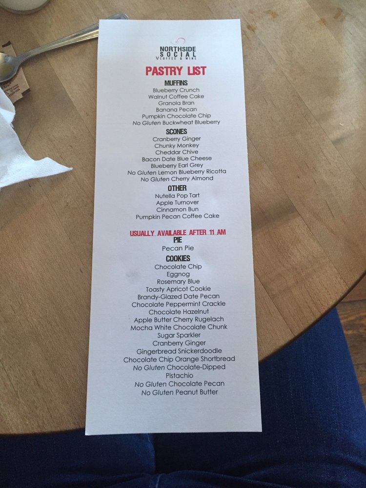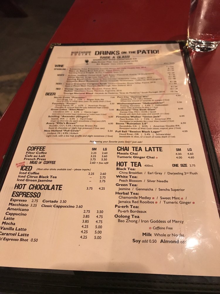 Customers rave about the cozy atmosphere, perfect for work or relaxation, enhanced by free Wi-Fi and ample outdoor seating. Indulge in specialty drinks like the apple cider chai latte or a craft pastry, each thoughtfully prepared. Plus, the establishment’s catering options and thoughtfully designed menu, featuring vegan choices and kid-friendly meals, ensure there's something for everyone. With a festive happy hour on weekends, Northside is the perfect spot for brunch enthusiasts and wine lovers alike.